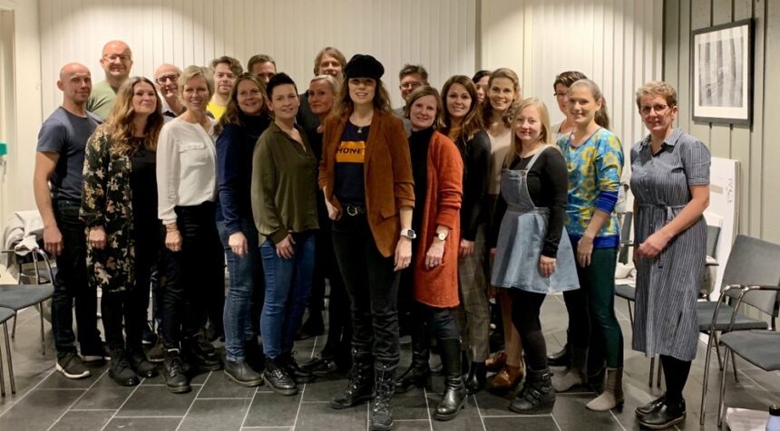 – Det er en glede å kunne presentere selveste Skiptvetkoret, som både vant historiens siste kommuneslag tidligere i år, og som har sunget for vår egen HMK Harald da han besøkte bygda i sommer, skriver Trine Rein på sin Facebook-side.