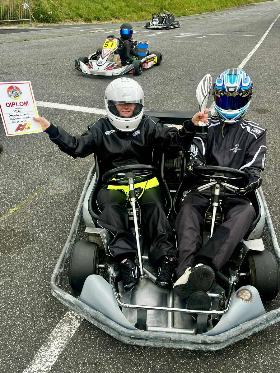 – Han hadde jo også lyst til å kjøre så Jan Evensen fra Trøgstad Rotary ordnet 2 twin karter og Sander Danielsen og Andreas Ruud Novak var ikke seine å be om å hjelpe til med kjøring.