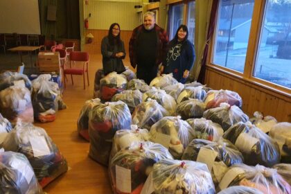 Det jobbes non stop med sortering av alle donasjoner, fordelt i sekker…